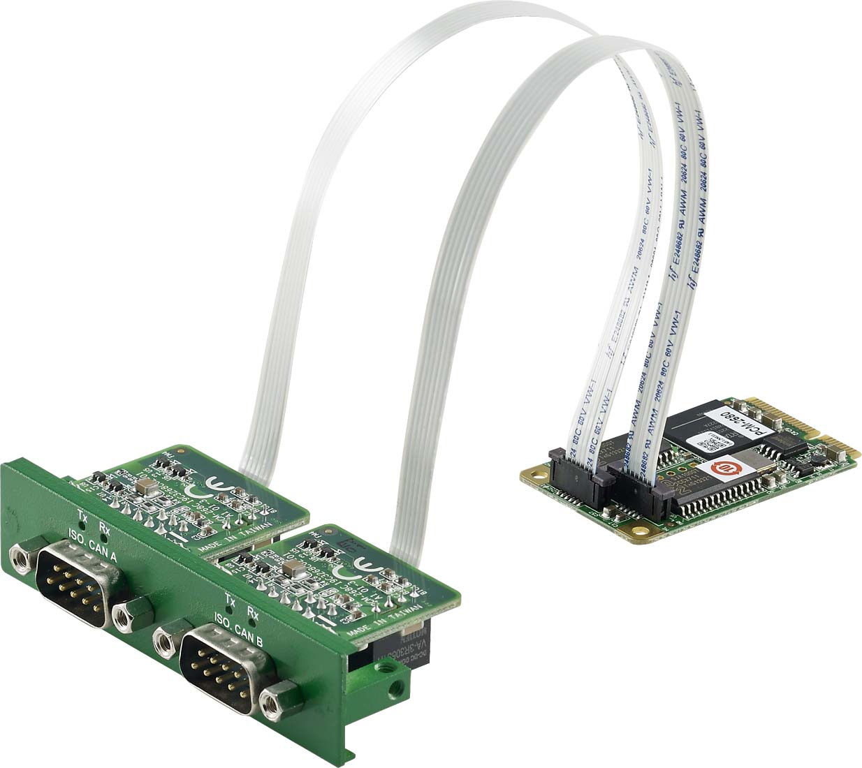 ‘-Meets Advantech Standard iDoor Technology. -PCI Express Mini Card Specification Revision 1.2 compliant. -Supports Advantech CANOpen Protocol Library. -DB9 x 2 ports, operates two separate CAN networks simultaneously. -High speed transmission up to 1 Mbps. -I/O address automatically assigned by PCIe plug and play. -Optical isolation protection of 2500 VDC ensures system reliability.