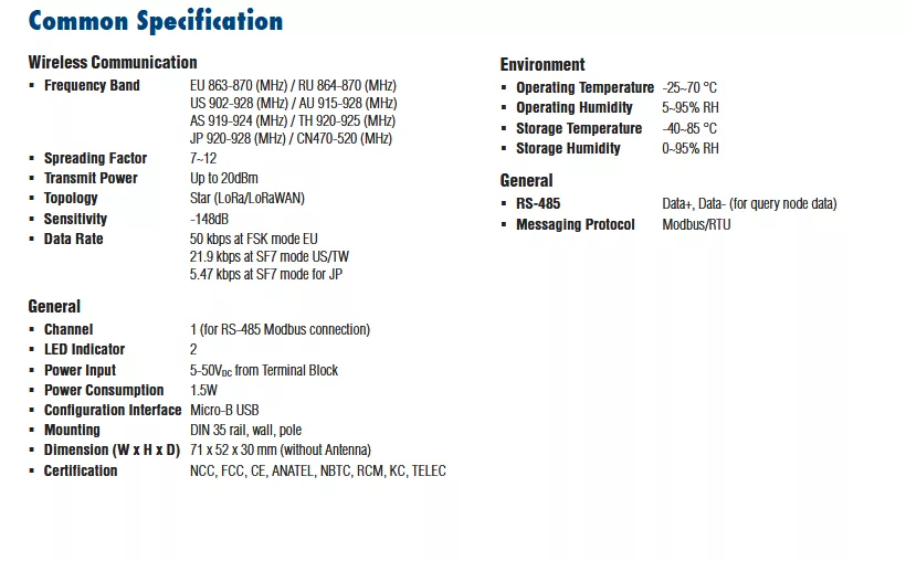 LoRaWAN Modbus R/W Communication Device